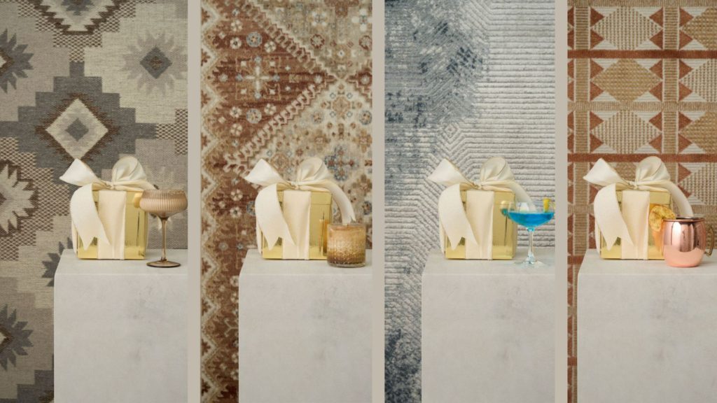 A retro-style rug with curvy geometric elements is the perfect way to bring everything together. Without it, even the most fun pieces of furniture can feel like they’re “floating” in the room. Like your pillows, you’ll want to choose a rug that pulls from a similar color family to other elements within the room.